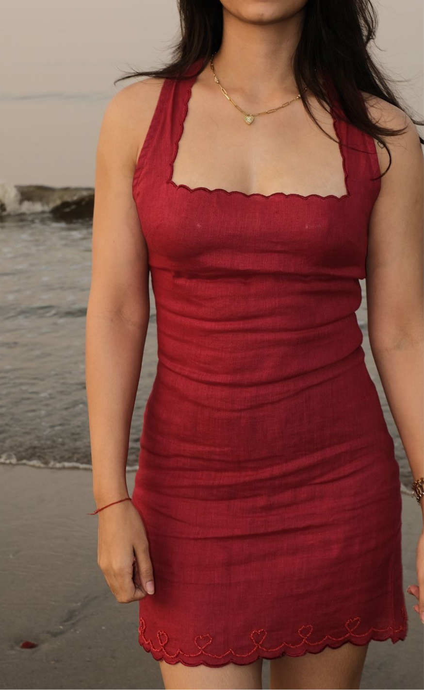 - Scalloped Edged Neck, Hem & Straps of the dress
