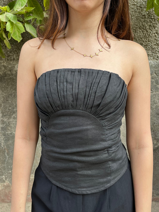 Black Corset Ruched Top