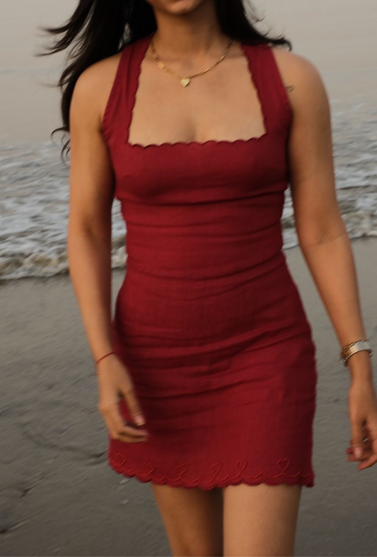 Red Scalloped Mini Dress